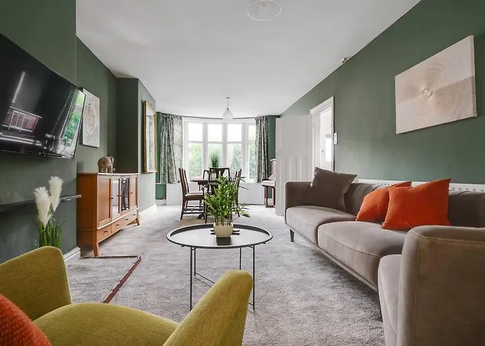 Charming 3Bd Home Didsbury House heeft een zitruimte en is ingericht met een bank en een bureau en voorzieningen zoals een TV en een flatscreen TV met satellietzenders om van te genieten. Rookmelders maken deel uit van de veiligheidsvoorzieningen op de kamer. De accommodatie omvat 3 slaapkamers met anti-allergische zachte of harde kussens. Het biedt ook 1 badkamer uitgerust met een apart toilet en een badkuip. Verder zijn er handdoeken beschikbaar.